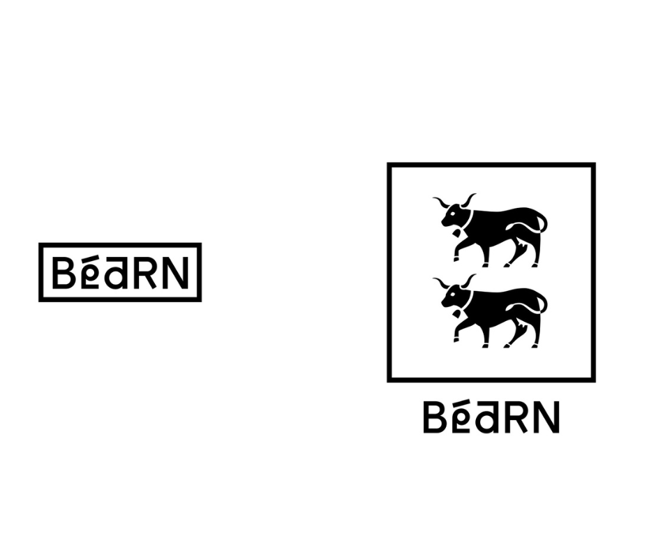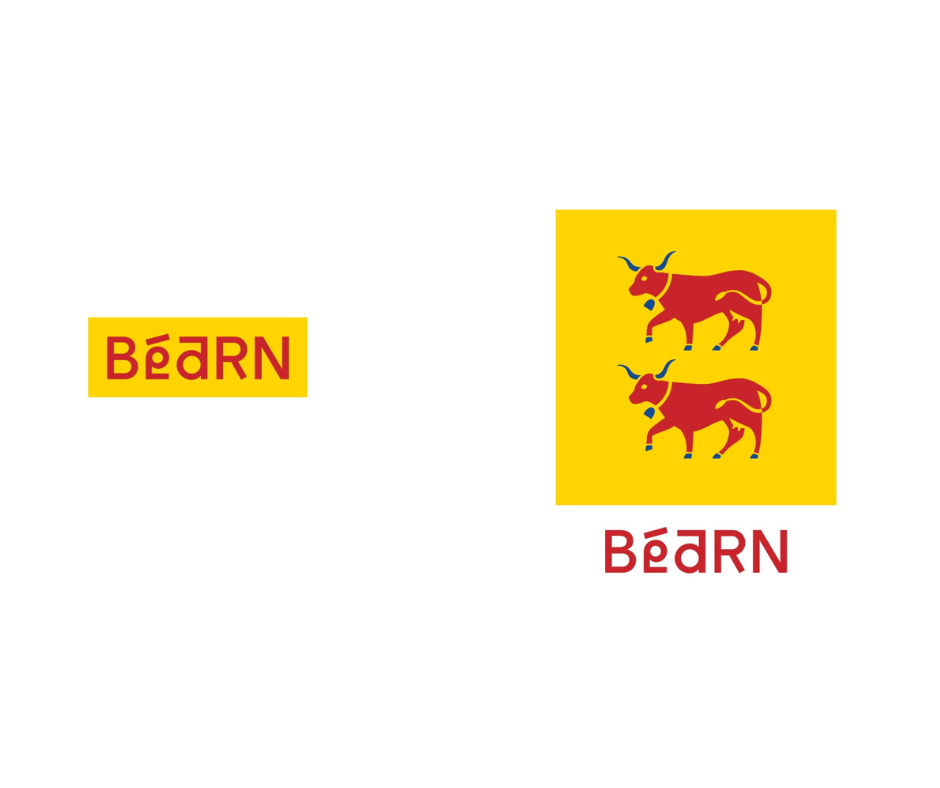 Cette proposition originale permet deux possibilités d’utilisation selon la destination. L’une simple et moderne en utilisant le lettrage seul. L’autre se combine avec les vaches modernisées. Elle garde un lien avec le blason historique du Béarn tout en renouvelant son design. Ses versions en couleur ou monochromes s’adaptent à toutes les formes et à toutes les tailles !