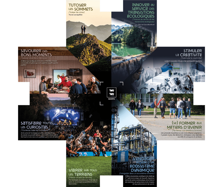 Vous partez en salon et vous voulez une plaquette qui donne envie de Béarn ? Vous êtes au bon endroit ! Attention, vous pourriez faire de belles conquêtes… En un seul coup d’œil, proposez une vision d’ensemble des atouts du Béarn, dans ses dynamiques économiques, sa vitalité culturelle ou encore son cadre de vie.
